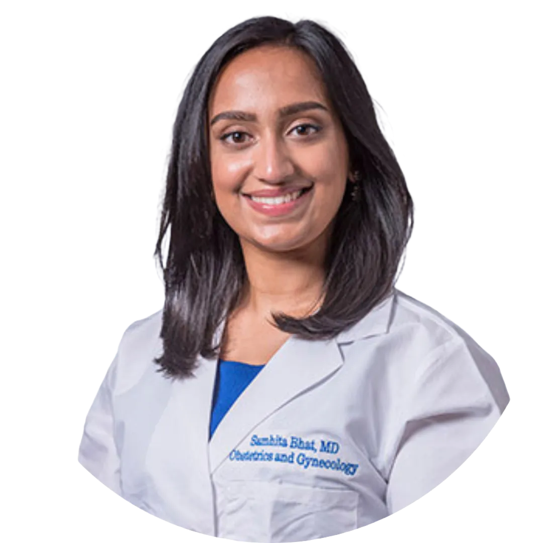 Dr. Bhat grew up in upstate New York and received her undergraduate degree in biology from Rensselaer Polytechnic Institute in 2013. She went to Brooklyn for her medical degree at SUNY Downstate in 2017. She completed her residency in obstetrics and gynecology at Albany Medical Center in upstate New York in 2021. She moved to Virginia for better weather and to be closer to her family.